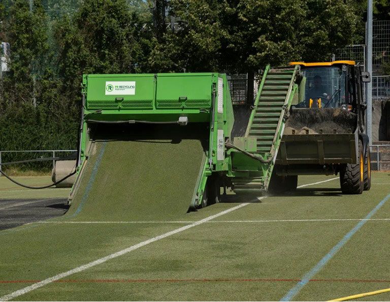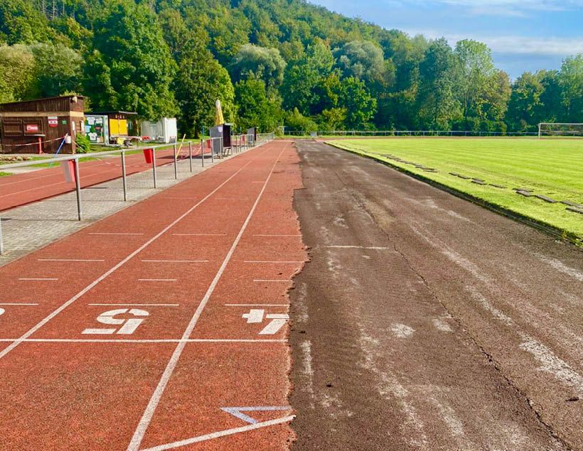 PR Recycling takes care of the deconstruction of plastic surfaces for you. With special equipment and our many years of experience, we carry out the work quickly, reliably and efficiently - regardless of whether it is solid plastic, sandwich or sprayed surfacing, on a bound or unbound base layer. We remove PU-bonded synthetic surfaces from athletics facilities such as circular running tracks, sectors or individual facilities, as well as from multi-sports facilities, gymnasiums and playgrounds.